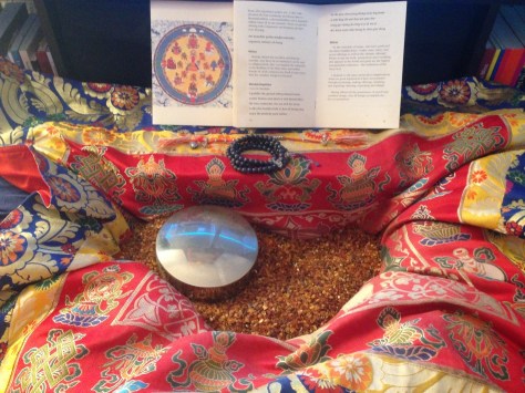 The second practice of Vajrasattva or Diamond Mind is compared to the cleaning out of all the dust and dirt that has accumulated over the years and in the first part of the renovation once all the rough work is finished. Vajrasattva is intrinsically connected to emotions like anger, as one purifies even the most subtle and hidden aspects of the negative things that we have said, thought, or done since beginningless time. The mantra is quite long, 100 syllables to be exact, and one mala takes a minimum of 15 minutes. Here one can hone their concentration skills and enjoy the blessing and relief of removing even more negative Karma from one’s store consciousness. The practice of holding ones concentration so intensely can often, but not always lead to feelings similar to that of anger. This happens because we are in a subtle way creating the mental or inner conditions that are reminiscent of anger. As we develop with the practice we begin to see this narrowness or tightening in everyday situations as we really do become angry. The meditation is skillfully showing us that anger is coming, we then have realized the great gift of then being able to choose to react negatively or not. This is the essence of Vajrasattvas neckar it purifies our past response to anger and we are now only left with an unobscured observation of the situation. This deep wisdom can only grow from here into the openness we begin to develop in the next practice of the mandala offering.